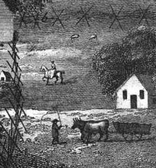 The Frontispiece of Sutcliff's book - A Farm-House in the Back Settlements. (not EC)
